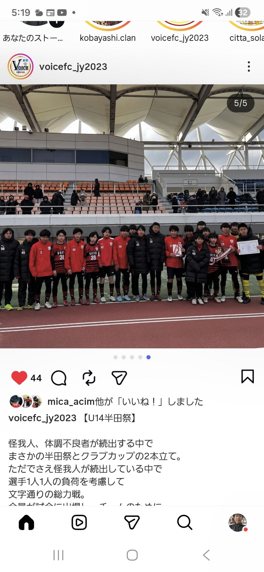 怪我人や病欠などがあるなか総力戦にて戦って見事初優勝しました。